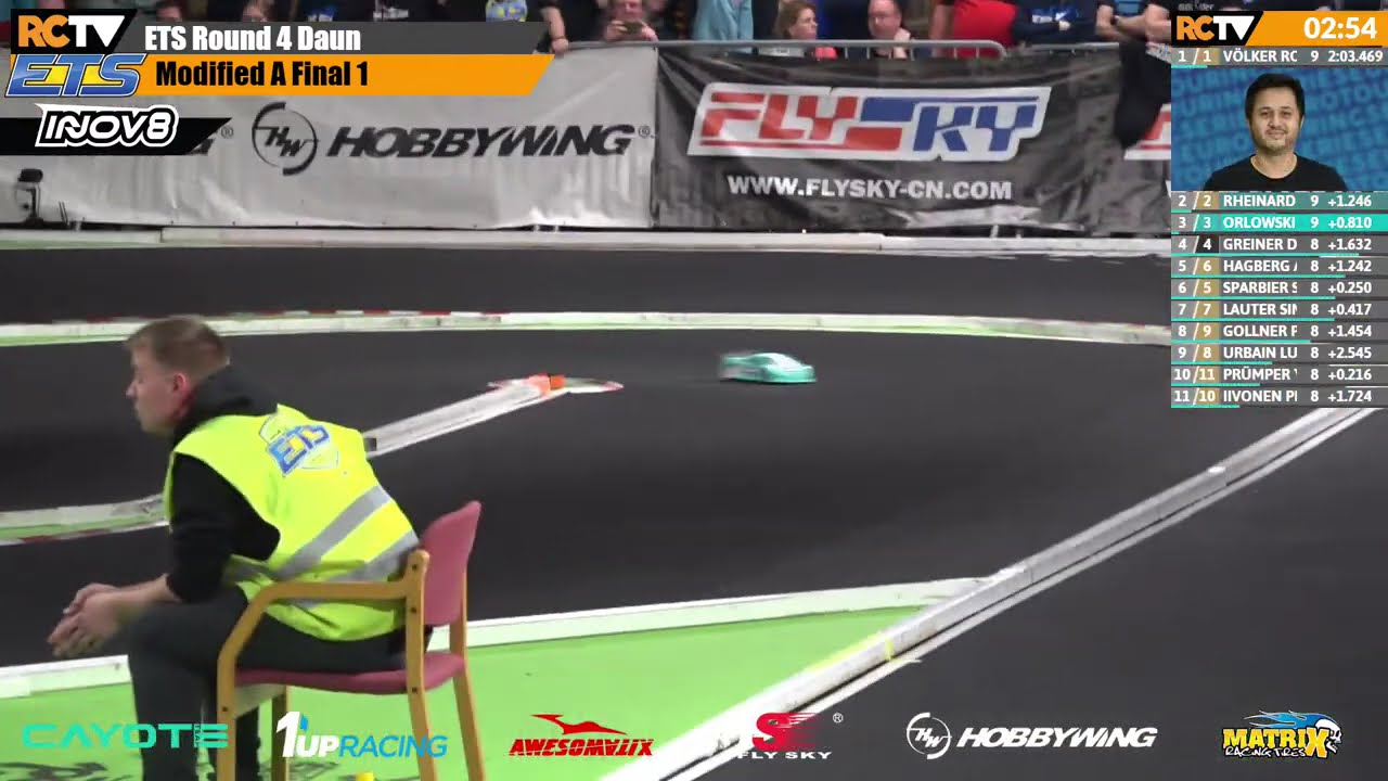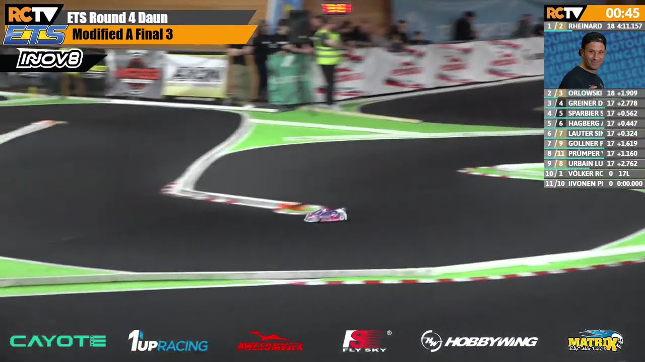 En post-interview Michal explique qu’il a tout changé sur sa voiture durant la nuit. C’est aussi une des premières fois que l’ETS roule avec un nouveau traitement - MR33 v5 - et il impacte énormément l’évolution de la piste. Étonnant, les pilotes se plaignent des conditions difficiles et notamment d’une piste pigéuse. Ronald détaille comment il a changé son style de pilotage et s’adapter lors de cette manche. Il faut rappeler que le grip a toujours été particulier à Daun notamment en raison du revêtement de la salle.