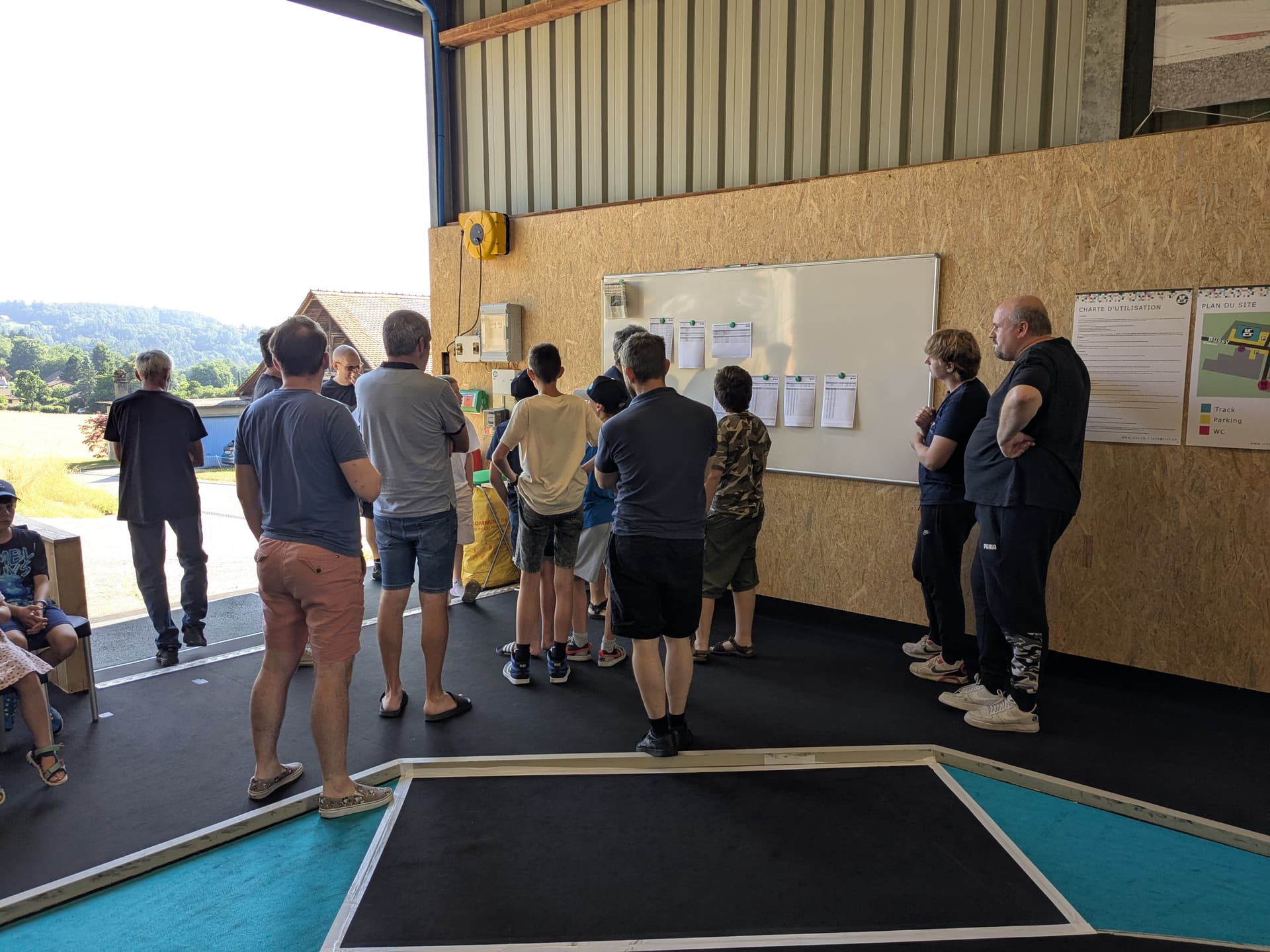 Après une semaine intensive de passeport vacances, les membres du club préparent et nettoyent la piste pour la SummerRace de demain!